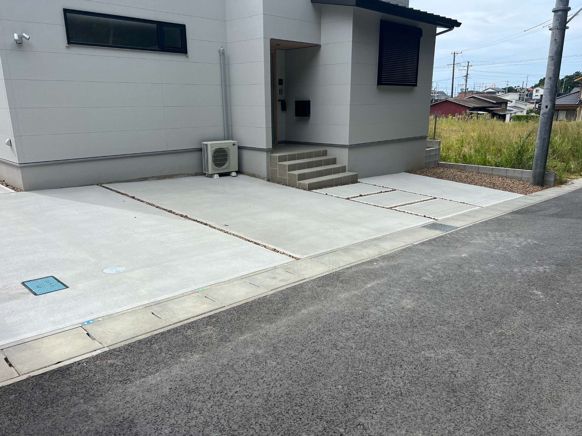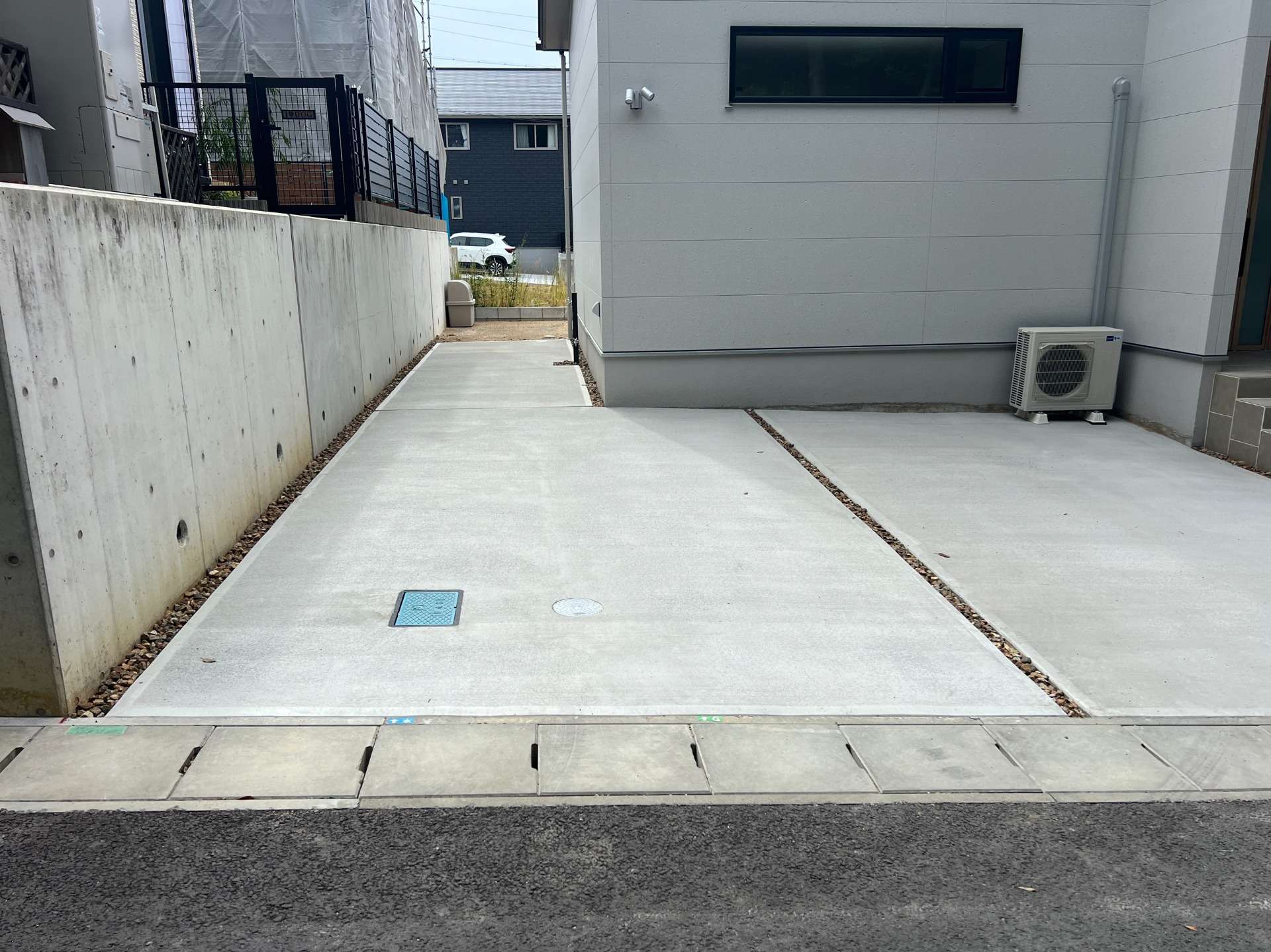 将来ガレージ設置をご希望のお施主様でした。その為に、設置予定の場所は、チャート石を敷きました。将来の事を考えると、外構工事を一式まとめて施工する事は、ハードルが高いと感じるお客様もいらっしゃいます。そんな時は、プランに余白部分をつくっておく事を提案させて頂きます。十分に考えて、またのご相談をお待ちしております。